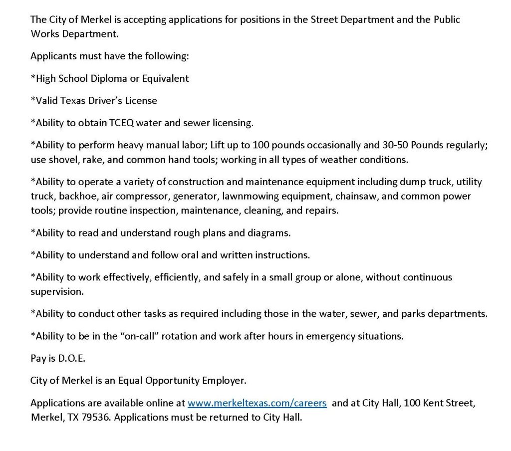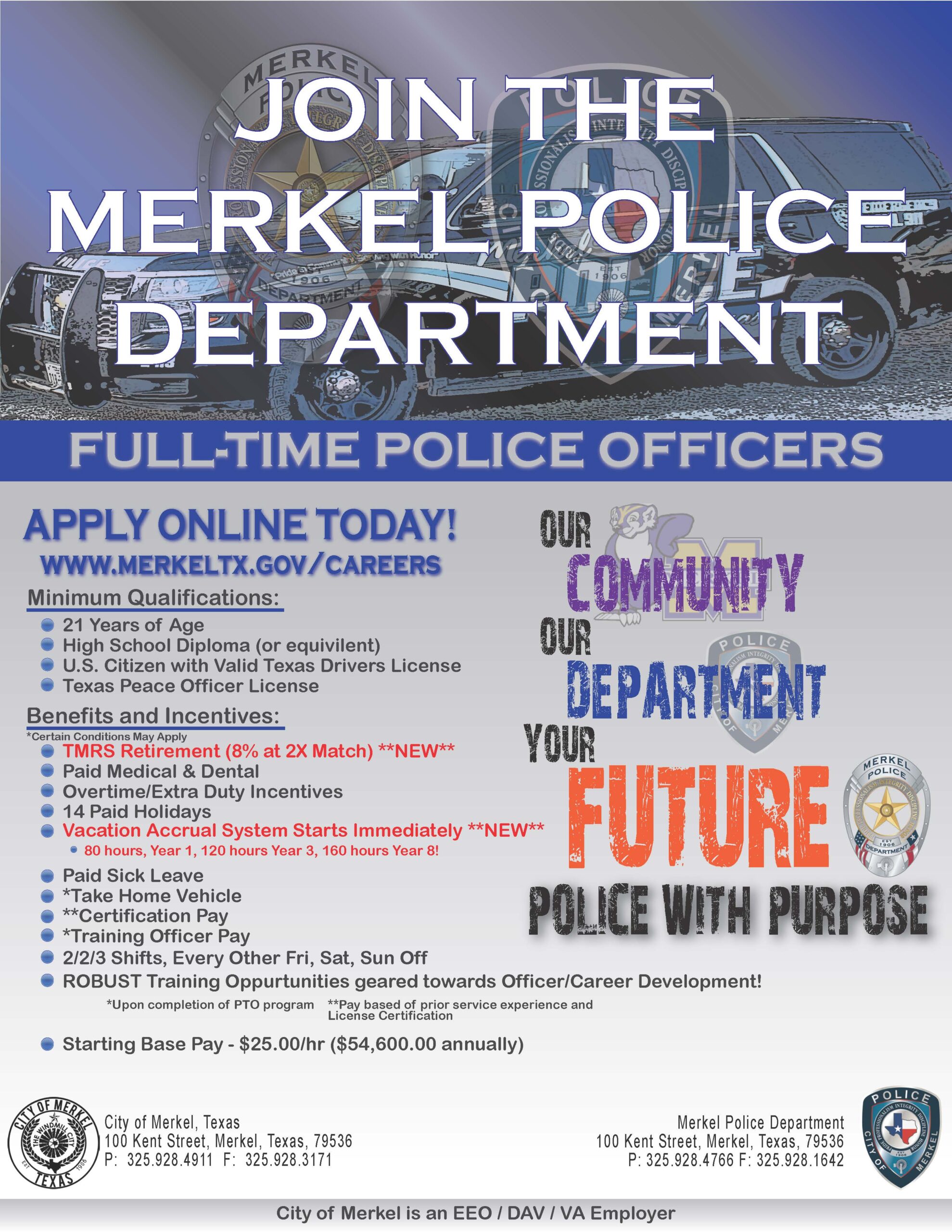 Please review the following documents to apply for employment with the Merkel Police Department.